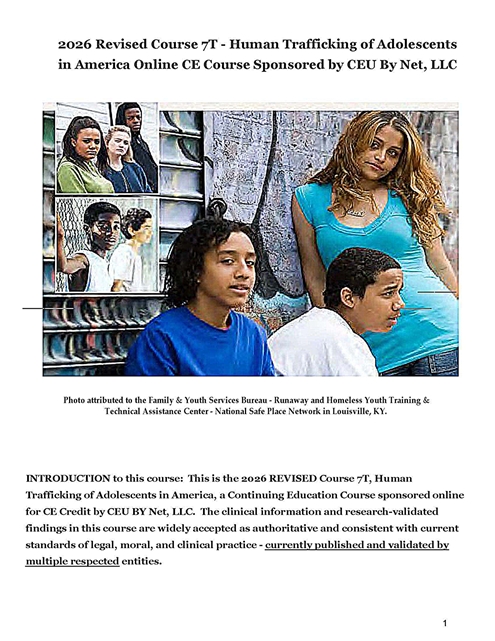 2026 HHSC-Approved Course 7T - Human Trafficking of Adolescents—Ethics, Culture, Identification, Assessment, and Rescue |